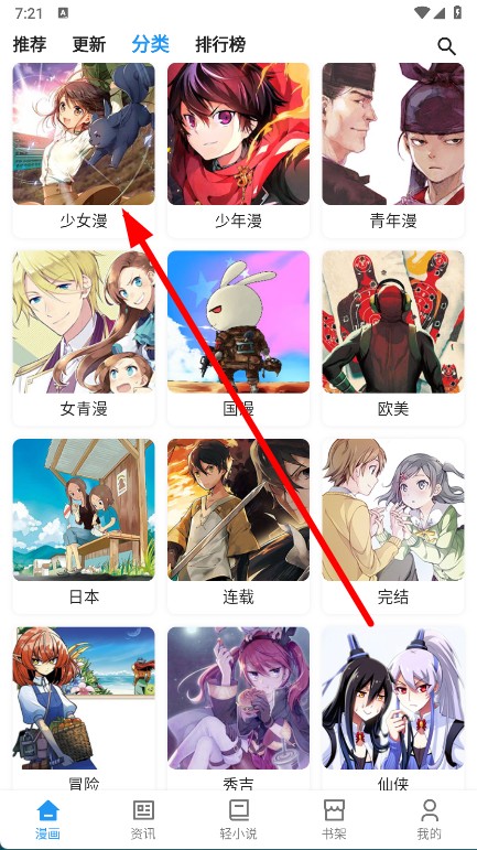 2、可看到多种漫画类型分类,根据喜好选择对应类型。