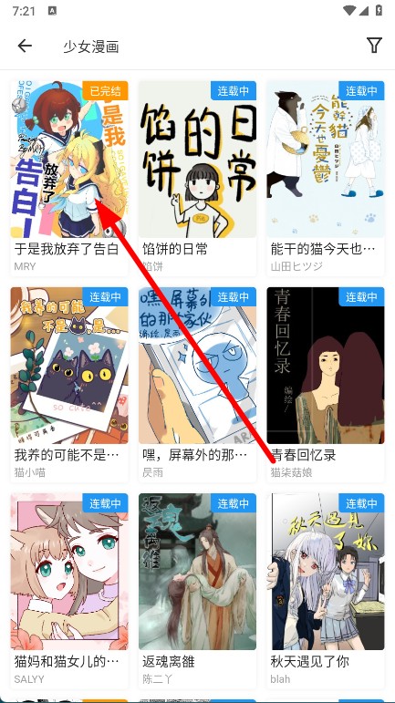 3、进入分类列表后,浏览漫画封面与简介,挑选想要阅读的作品并点击。