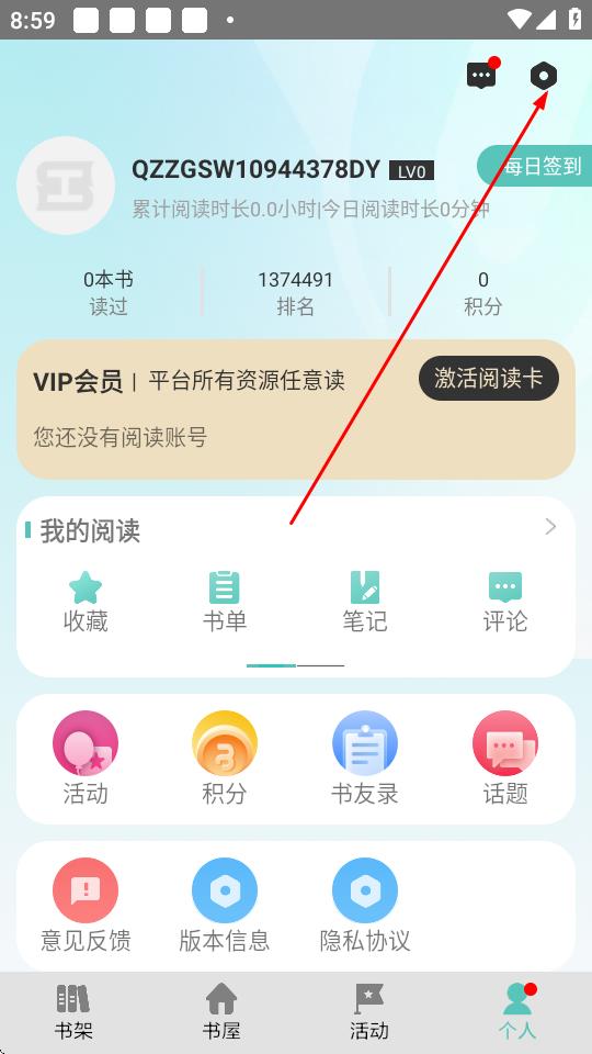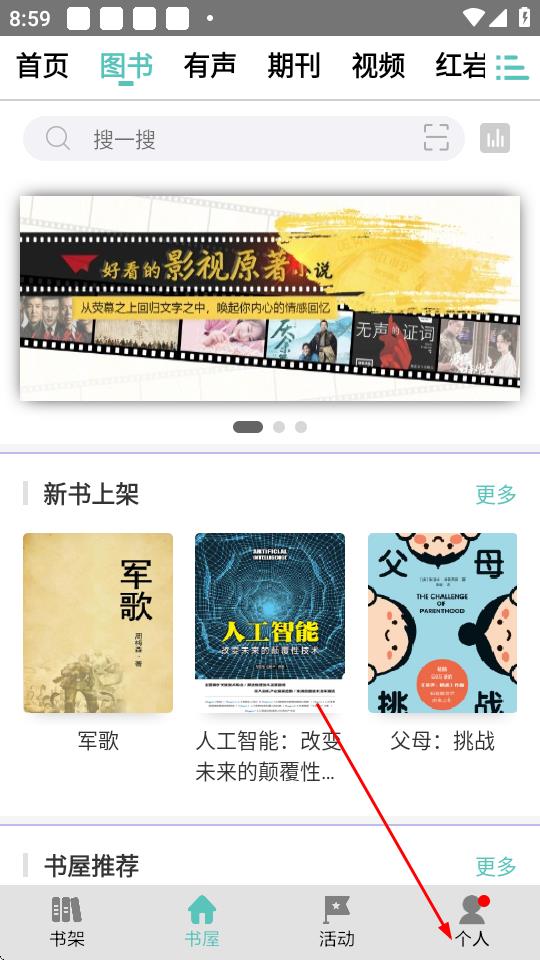 1、打开职工书屋App,进入首页后,点击底部导航栏中的个人选项。