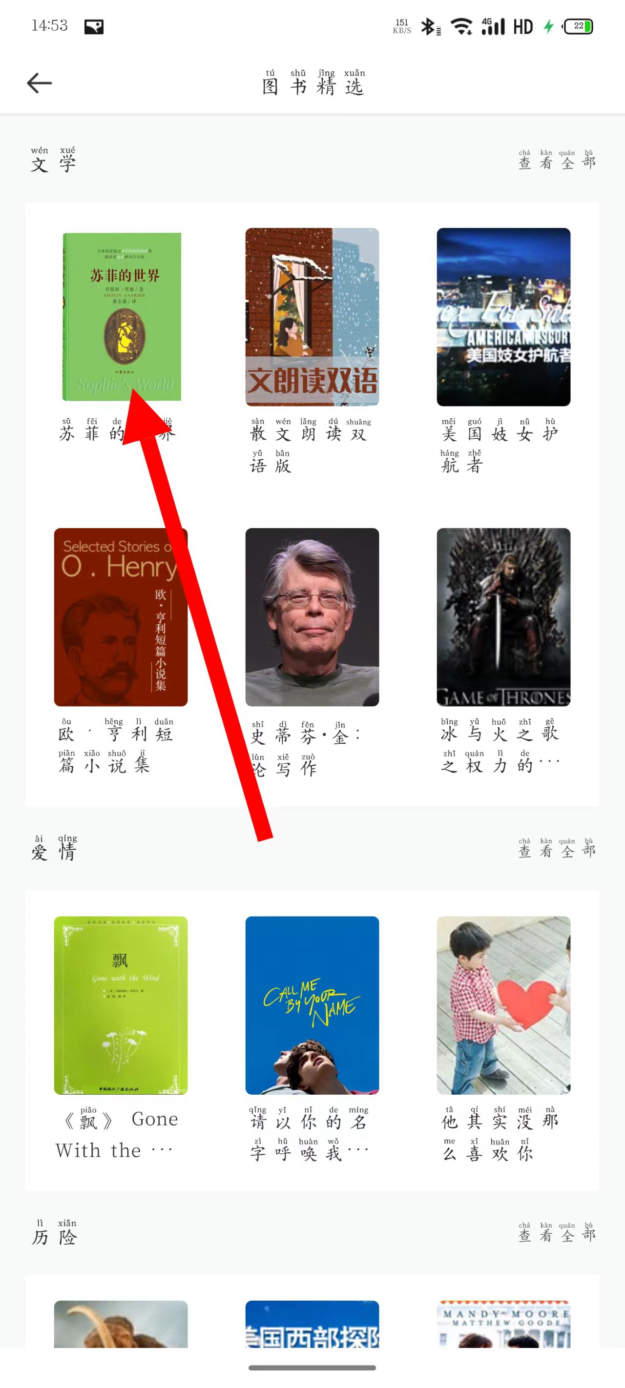 2. 在图书精选页面,浏览找到想听的小说并点击。