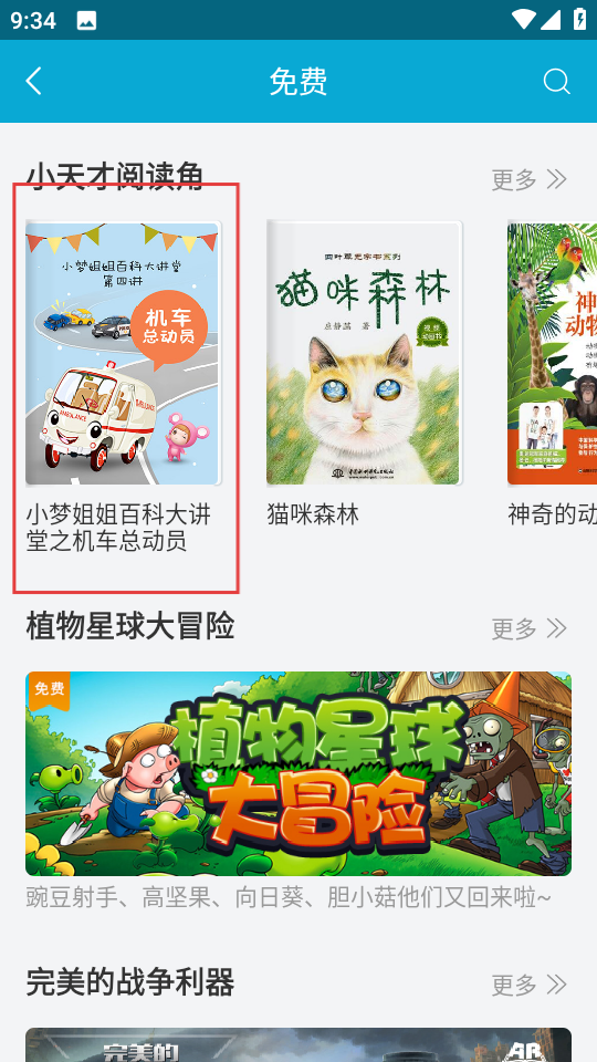 3、在免费页面,选择小梦姐姐百科大讲堂之机车总动员。