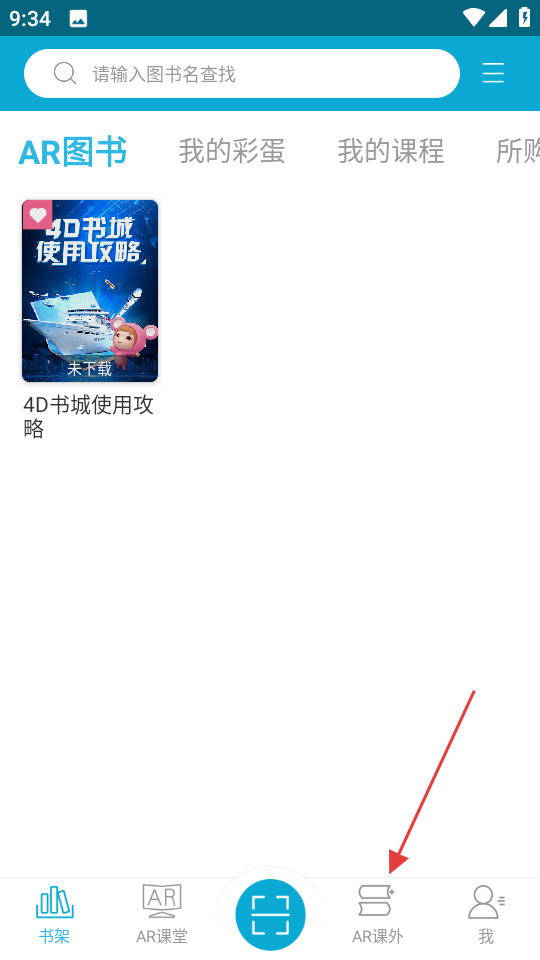 1、打开4D书城,点击底部导航栏的AR课外。