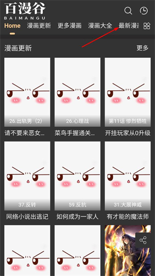 1、在百漫谷首页,点击顶部导航栏的最新漫画,进入最新漫画列表页面。