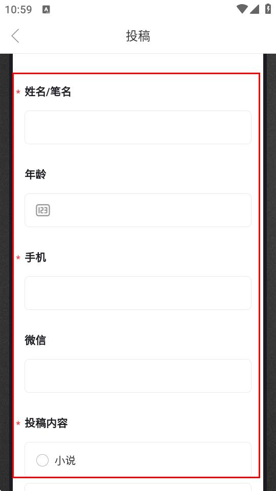 3、进入投稿页面后,按照要求填写个人信息,以及选择投稿内容的类型。