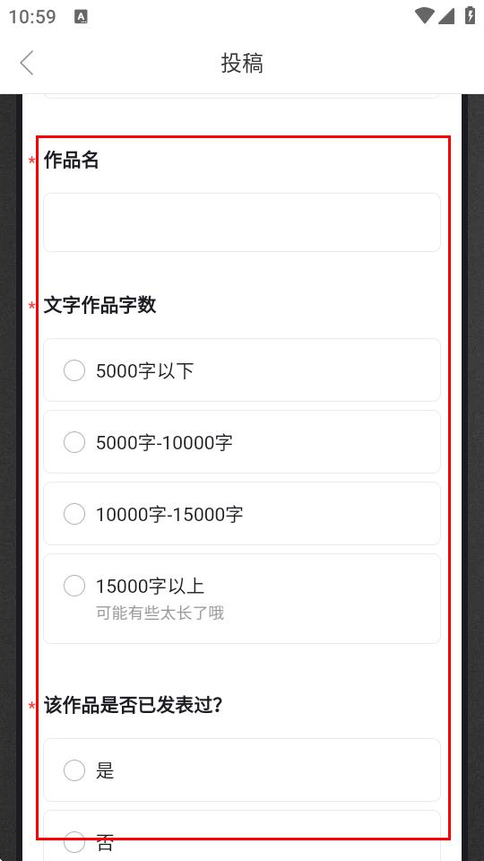 4、继续填写作品名,选择文字作品字数,以及该作品是否已发表过。