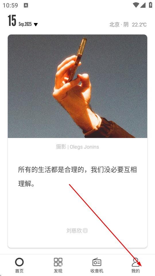 1、打开one一个App,点击底部导航栏中的我的选项。