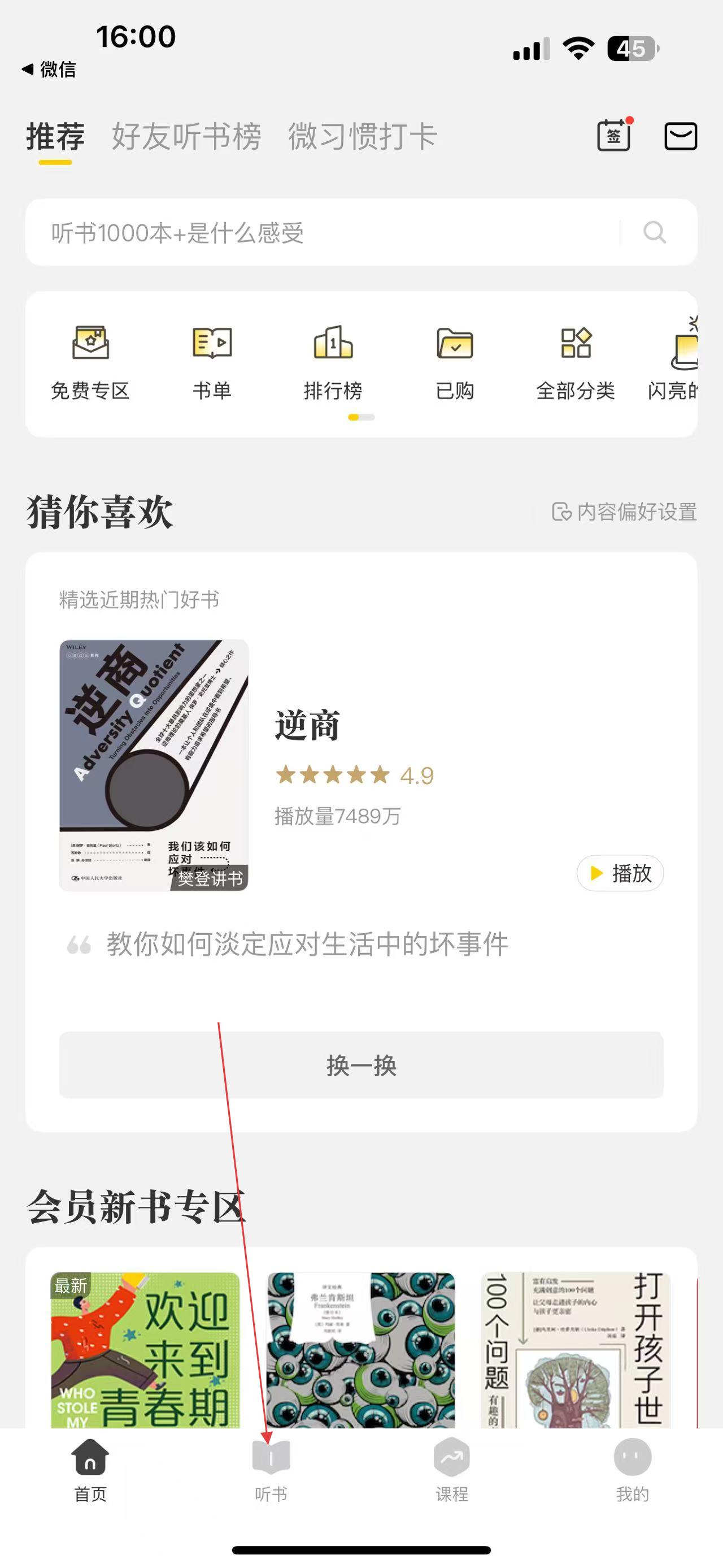 2、在听书页面的猜你喜欢等区域,浏览找到带有免费标识或介绍的书籍,如展示的书籍。
