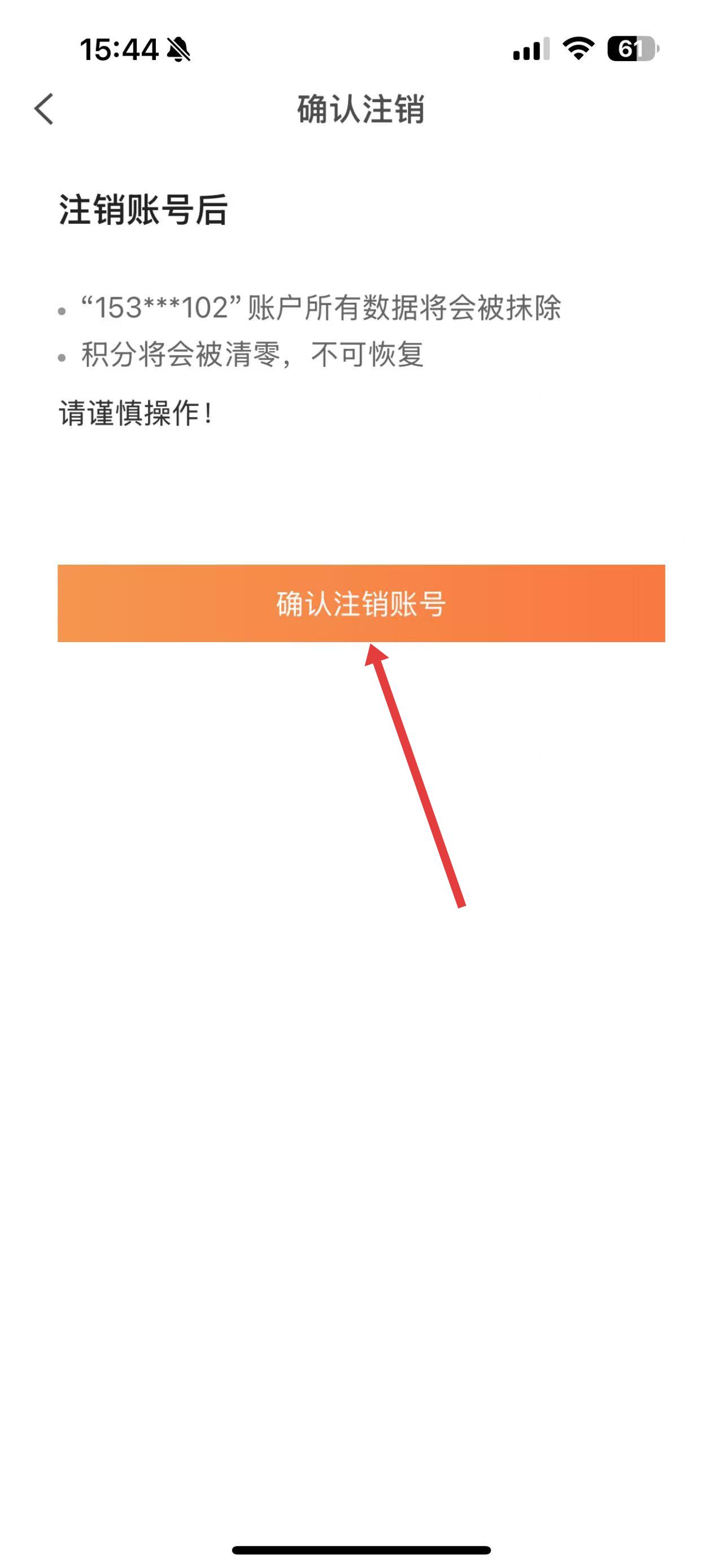 4、进入确认注销页面,阅读相关提示后,点击确认注销账号完成注销。