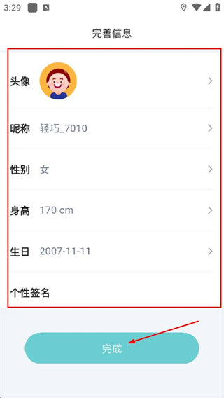 3、在完善信息界面填写信息,点击完成,完成注册流程。