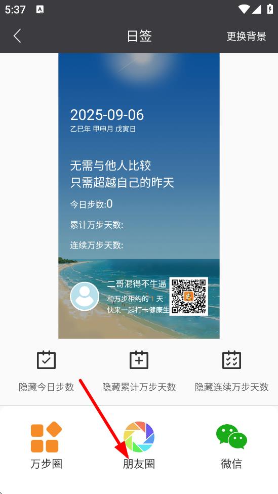 4、在日签页面,点击朋友圈,可将日签分享到朋友圈。
