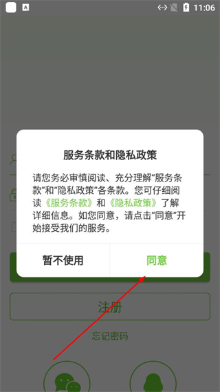 1、打开开云健康app后,在弹出的服务条款和隐私政策窗口中点击同意。