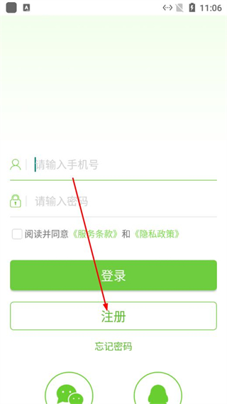 2、在登录/注册界面点击注册,进入注册信息填写页面。