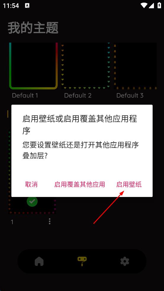 3、创建后弹出设置选项,点击“启用壁纸”,即可将编辑好的主题设为壁纸,让界面呈现个性化效果。