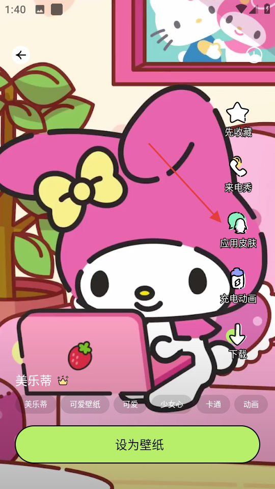 4、在皮肤应用设置页面,点击设为皮肤,将该壁纸设为应用皮肤。