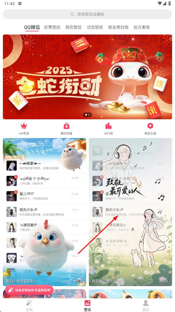 1、打开壁纸软件,进入“壁纸”页面,找到目标壁纸“致敬最可爱的人”,点击该壁纸封面 。
