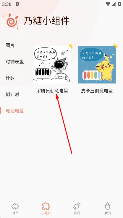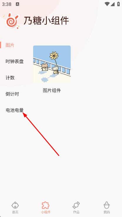 2、在乃糖小组件页面,点击电池电量,进入电池电量组件选择页面。