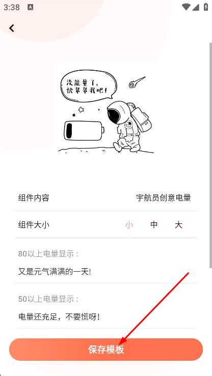 4、设置好组件内容后,点击保存模板,即可保存该电池电量组件模板。