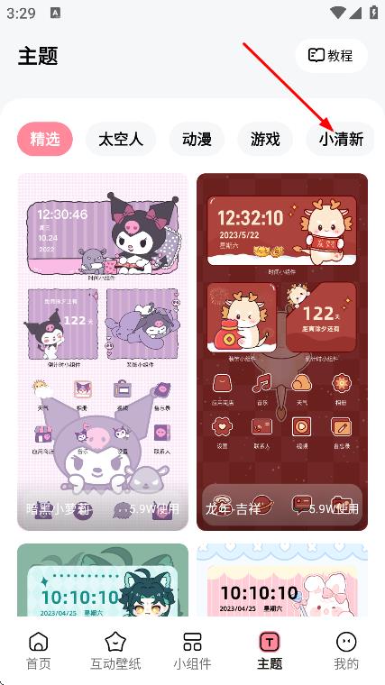 2、在主题页面,选择主题分类,如小清新。