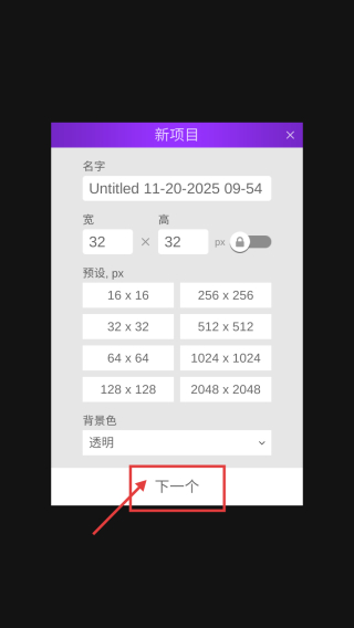 1、打开图像编辑类应用,点击新建按钮,进入新项目创建页面。