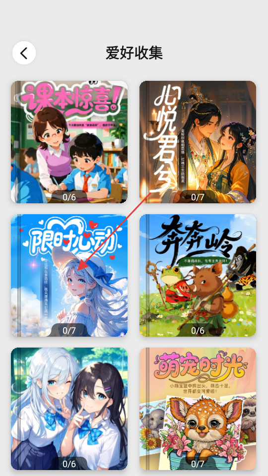1、点击爱好收集右侧的更多按钮,进入爱好收集完整页面。