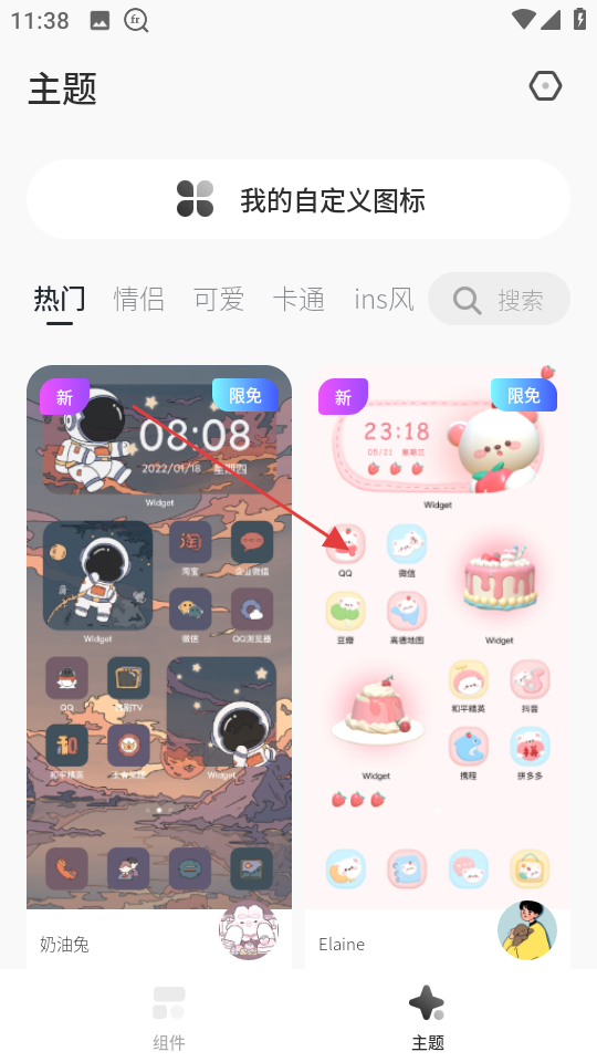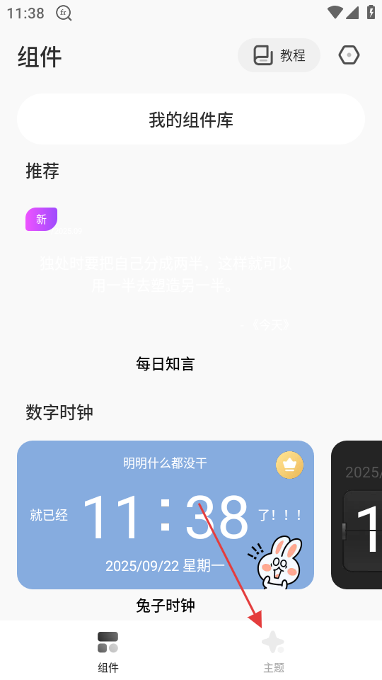 1、在组件页面,点击底部的主题按钮,进入主题页面。