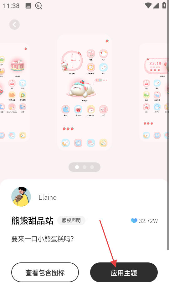 3、在主题详情页,点击应用主题,进入壁纸设置页面。