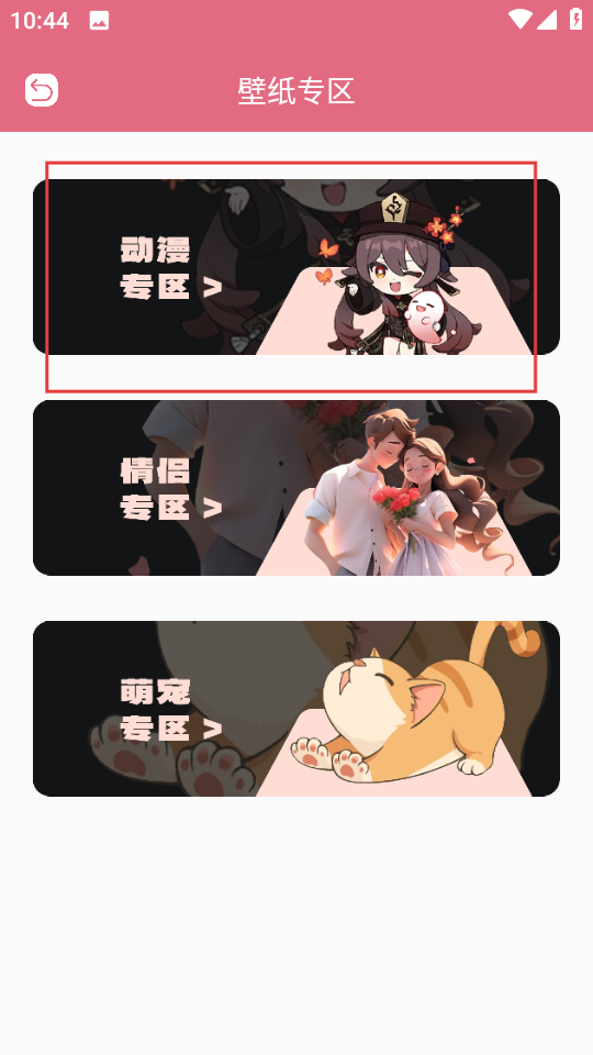 2、在壁纸专区页面,点击动漫专区,进入动漫壁纸页面。