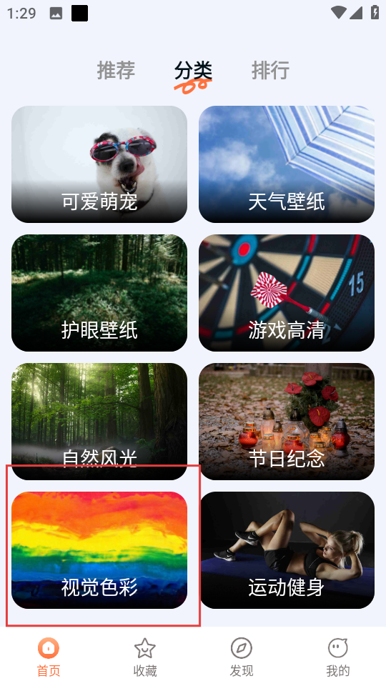 2、在分类页面,点击视觉色彩分类,进入视觉色彩壁纸列表