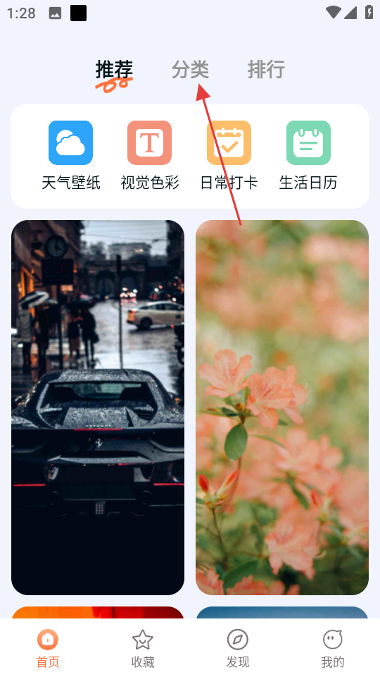 1、打开跃动壁纸,在首页点击分类选项,进入分类页面。