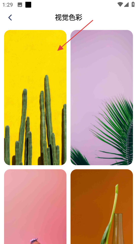 3、在视觉色彩壁纸列表里,选择喜欢的壁纸,比如黄色背景仙人掌的这款。