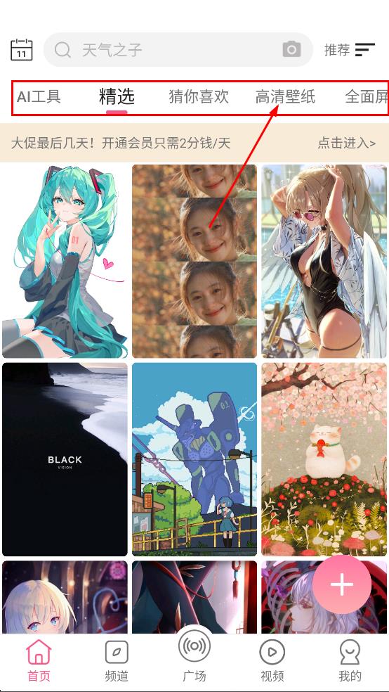 2、在元气壁纸主界面,点击高清壁纸,进入高清壁纸页面。
