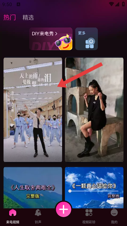 1、打开嗨来电APP,在来电视频页面的热门分类下,点击想要设置为来电秀的视频。