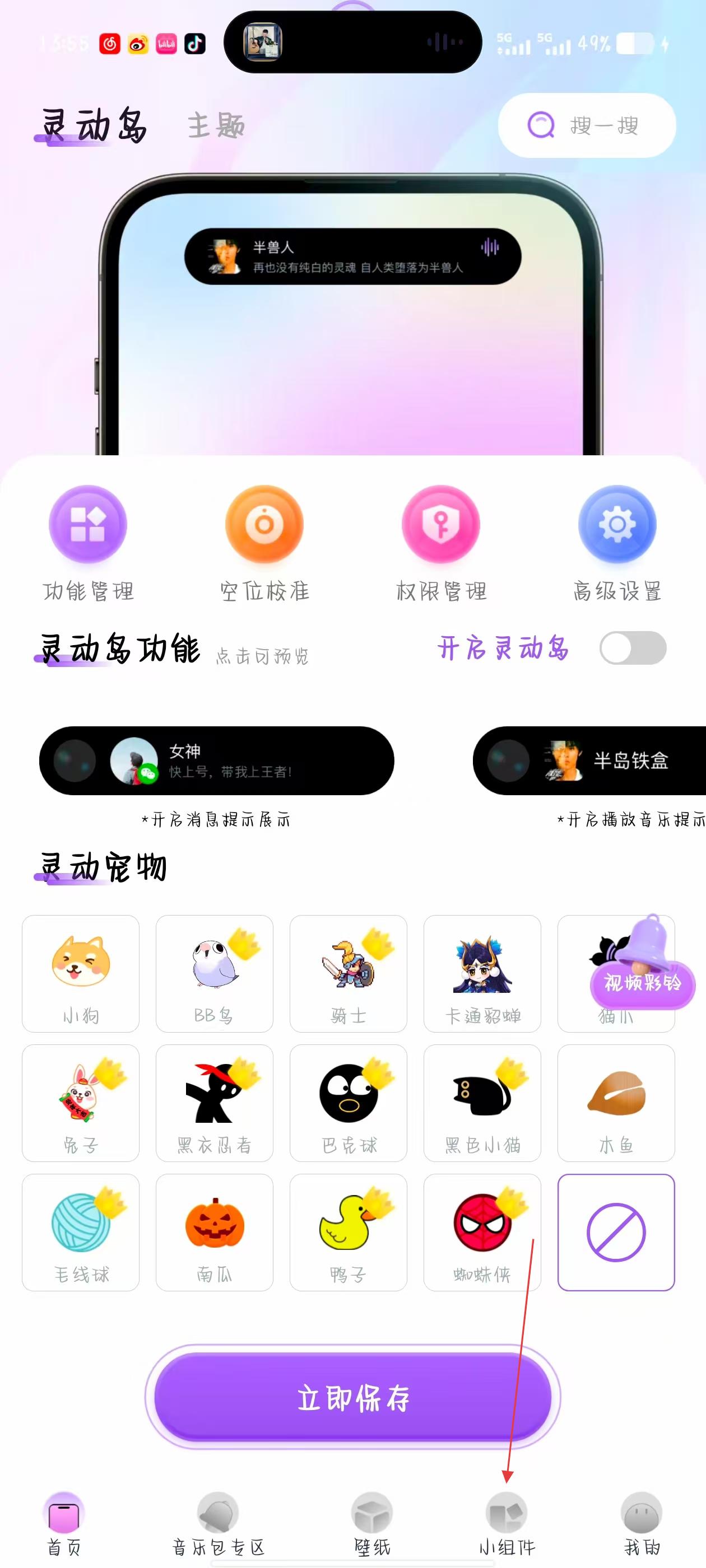 灵动坞怎么添加保存小组件的教程