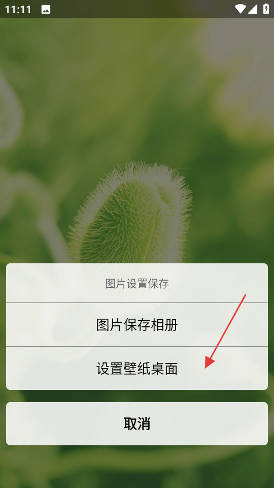 4、在操作选项框中,点击设置壁纸桌面,将该护眼壁纸设为桌面壁纸。