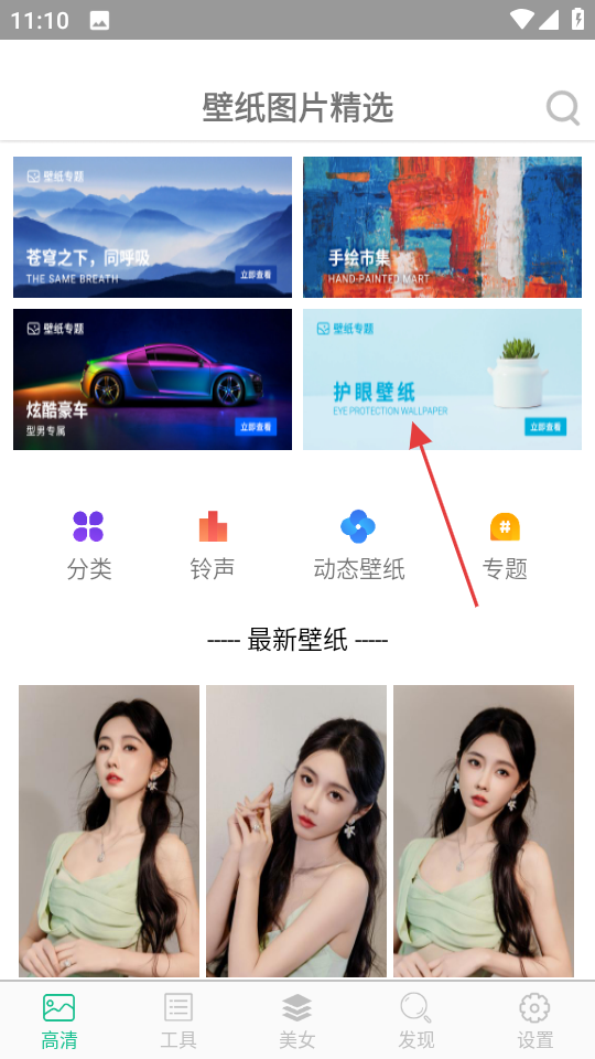 1、在壁纸图片精选页面,点击护眼壁纸专题,进入护眼壁纸页面。