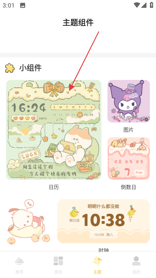 2、在主题页面,选择日历小组件,进入日历组件页面。