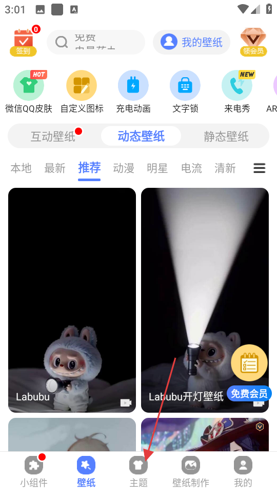 1、打开心动主题壁纸,点击底部导航栏的主题。