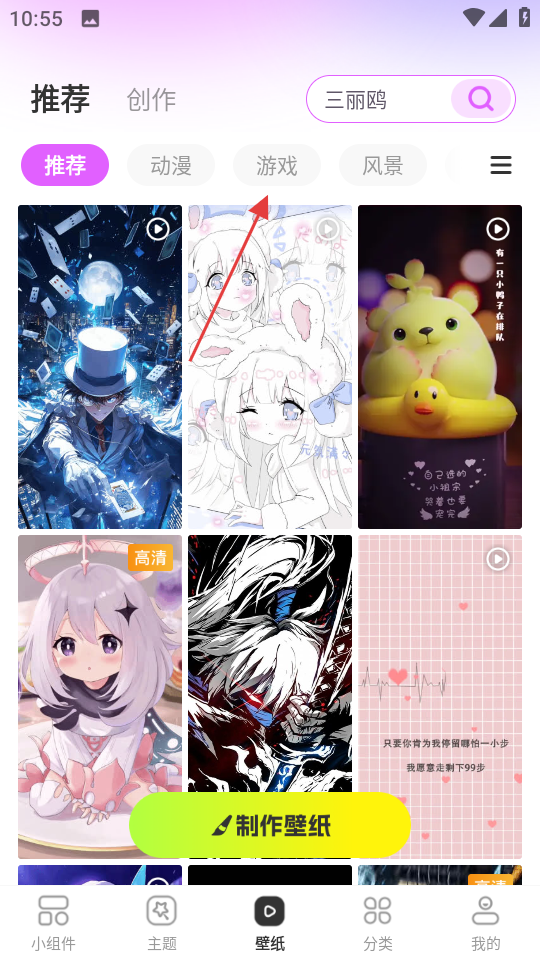 2、在壁纸页面,点击游戏分类,进入游戏分类壁纸页面。