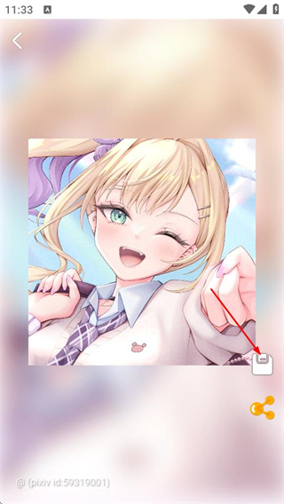 3、在图片详情页面,点击保存图标,可下载图片保存到本地。