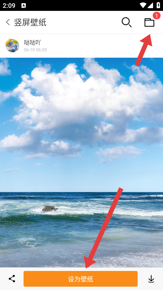 2、在竖屏壁纸页面,先点击底部设为壁纸,系统会先下载壁纸,然后点击右上角下载管理页面。
