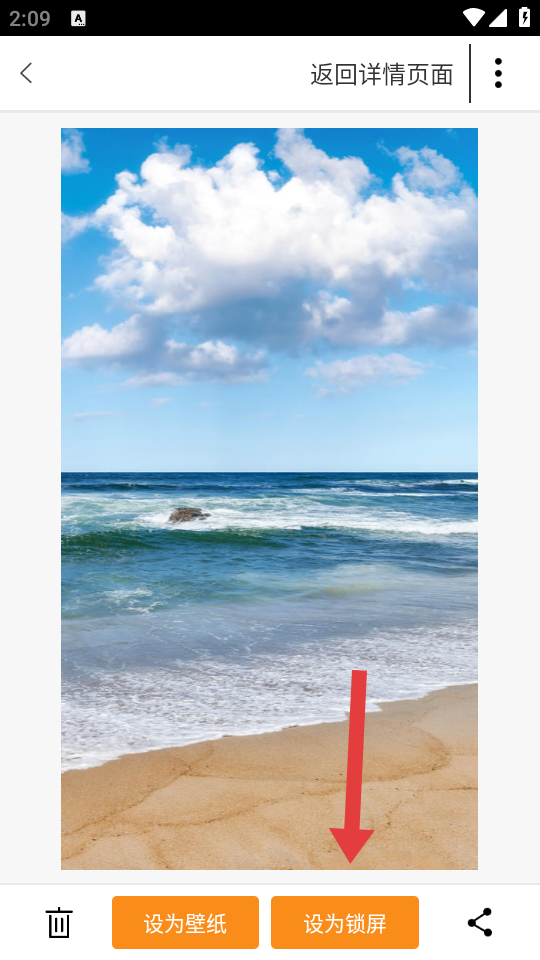 4、在壁纸详情的页面,点击底部的设为锁屏按钮,即可将该壁纸设置为手机锁屏。