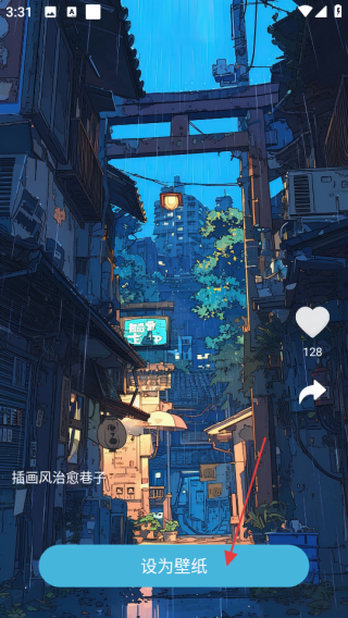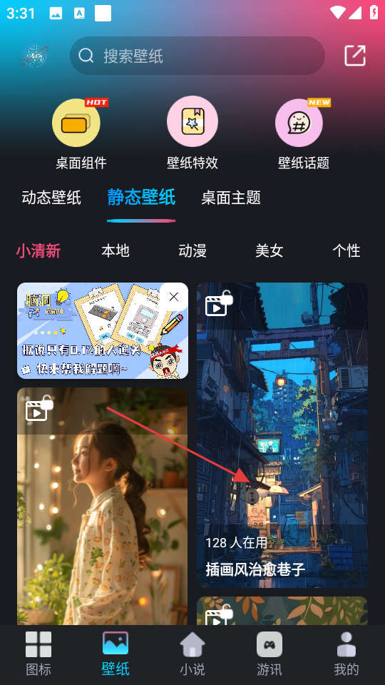 3、在静态壁纸展示中,挑选心仪的壁纸,比如插画风治愈巷子这张,点击进入其详情页。