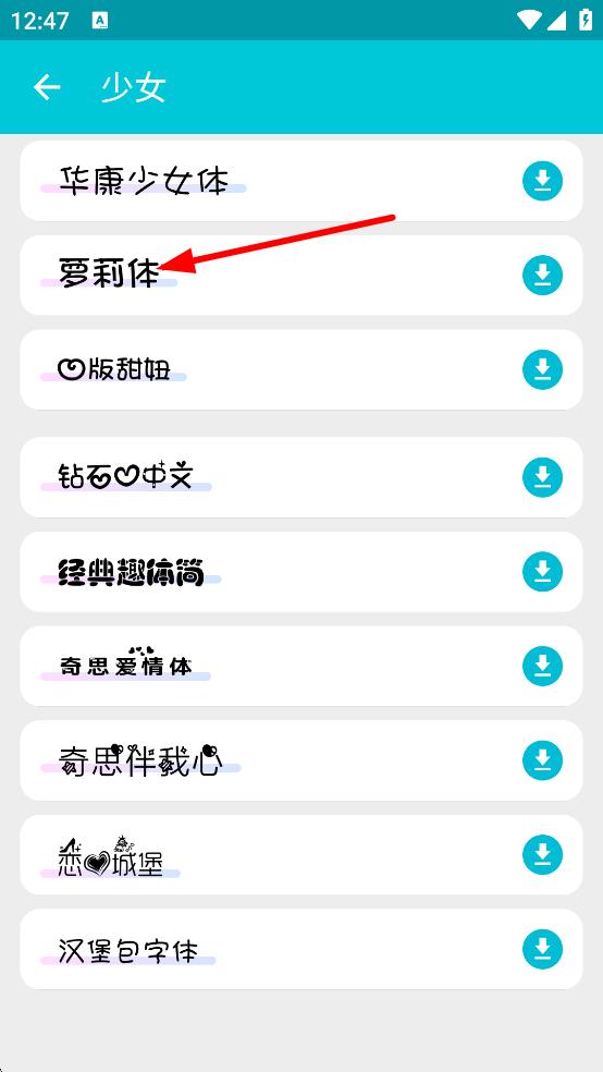 3、在少女类字体列表中,选择喜欢的字体,如萝莉体。