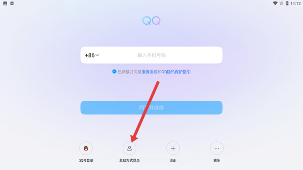 1、在qq的登录页面中,可以点击底部当地其他方式登录切换登录方式。