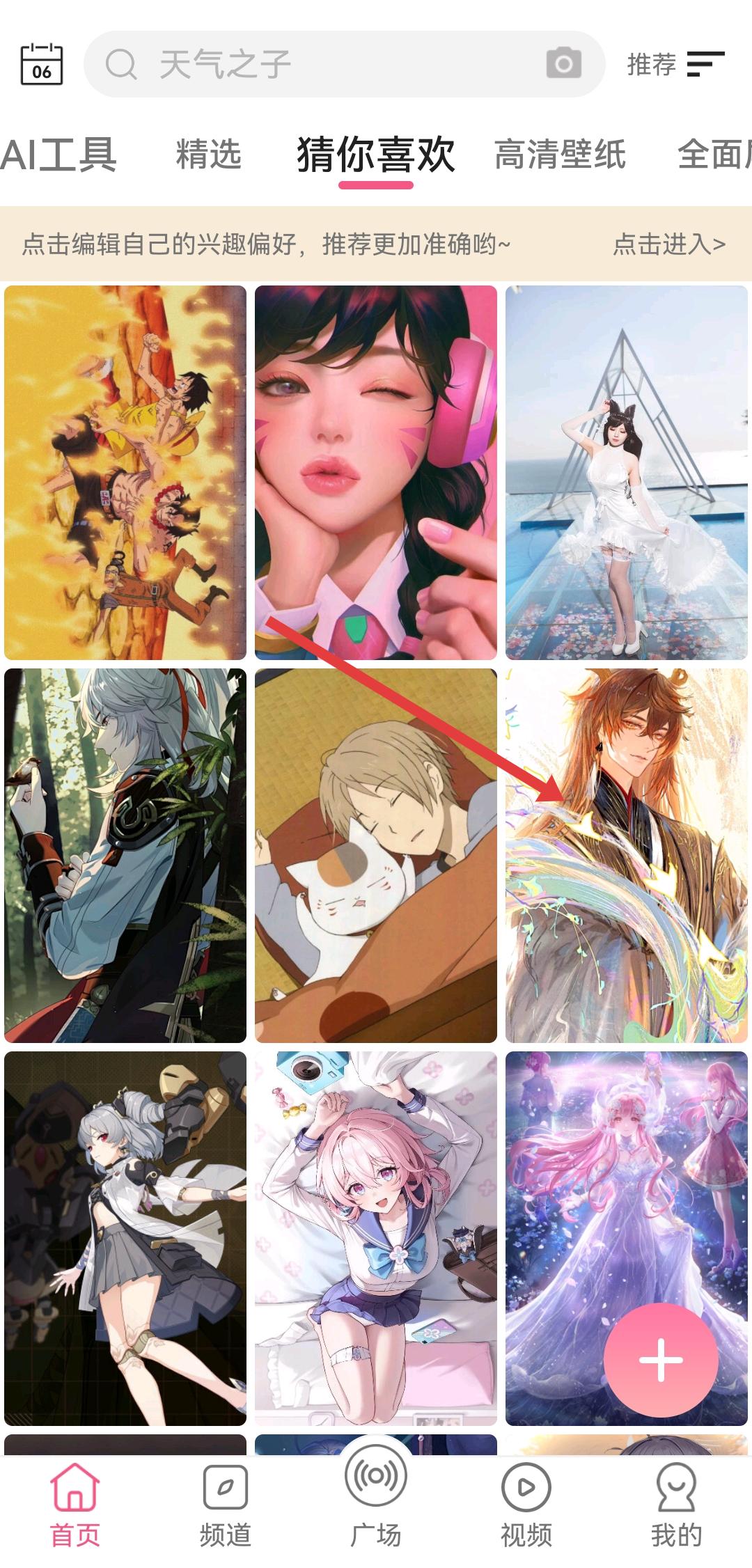 1、打开元气壁纸,在猜你喜欢等分类中找到想要下载的动态壁纸,点击进入壁纸详情页面。