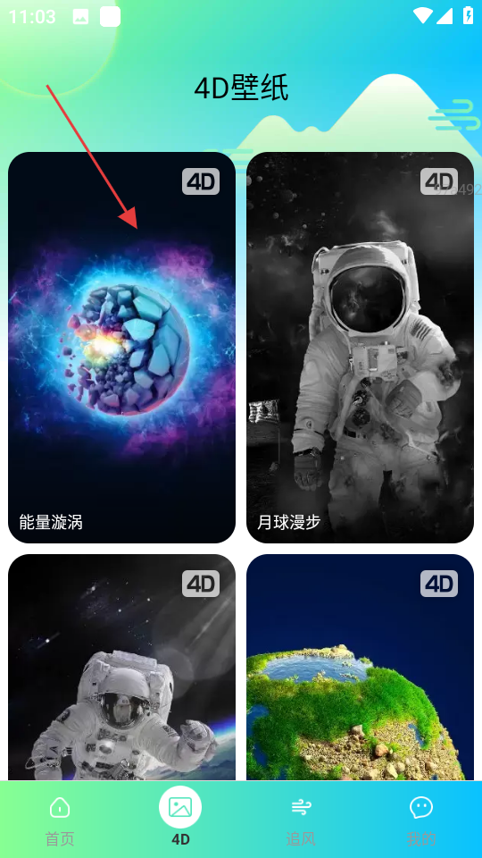 2、在4D壁纸页面,选择喜欢的4D壁纸,如能量漩涡,进入壁纸详情页。