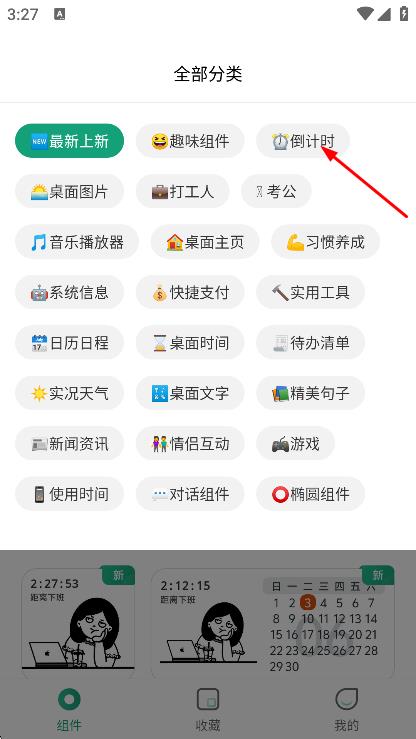 2、在全部分类页面,点击倒计时,进入倒计时组件页面。