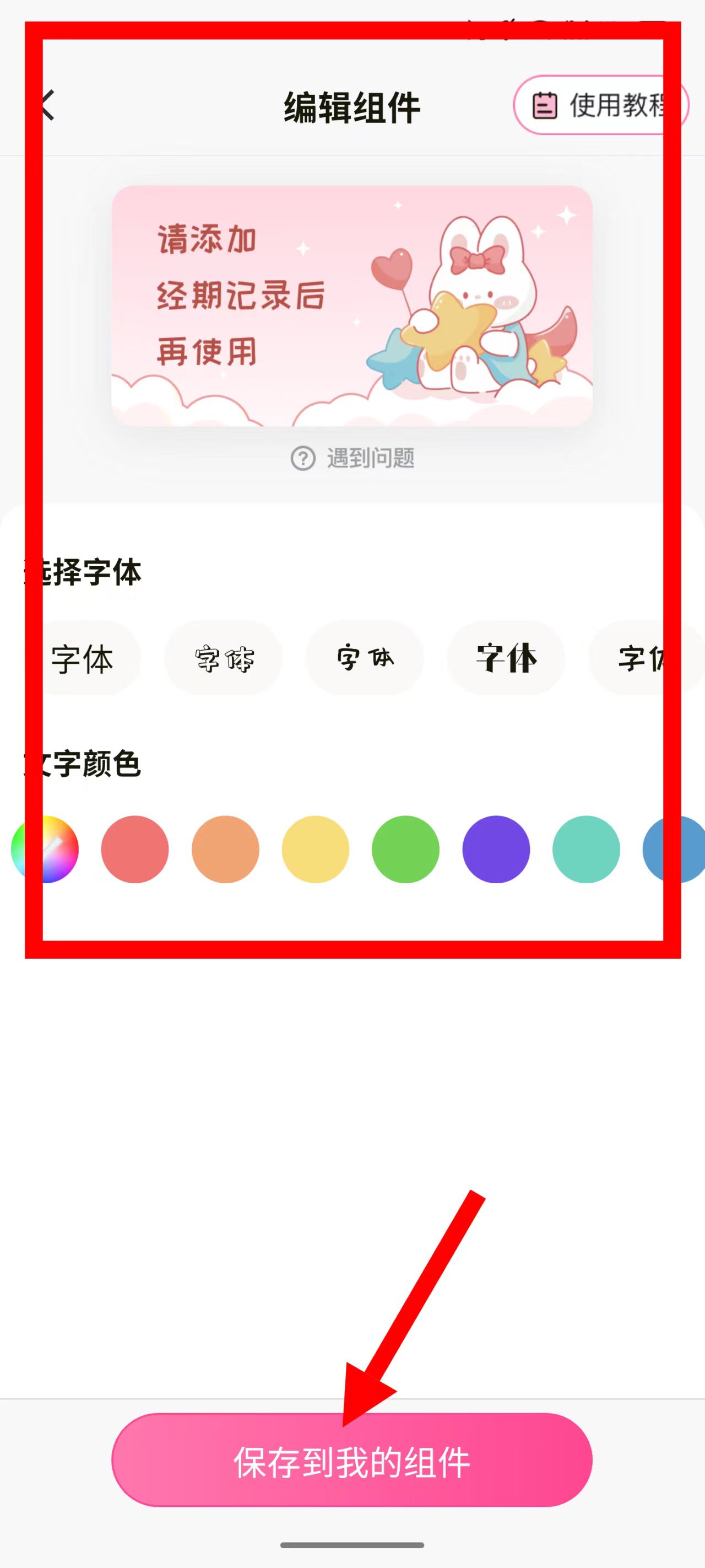 4、设置字体、文字颜色等参数,设置完成后点击保存到我的组件按钮。