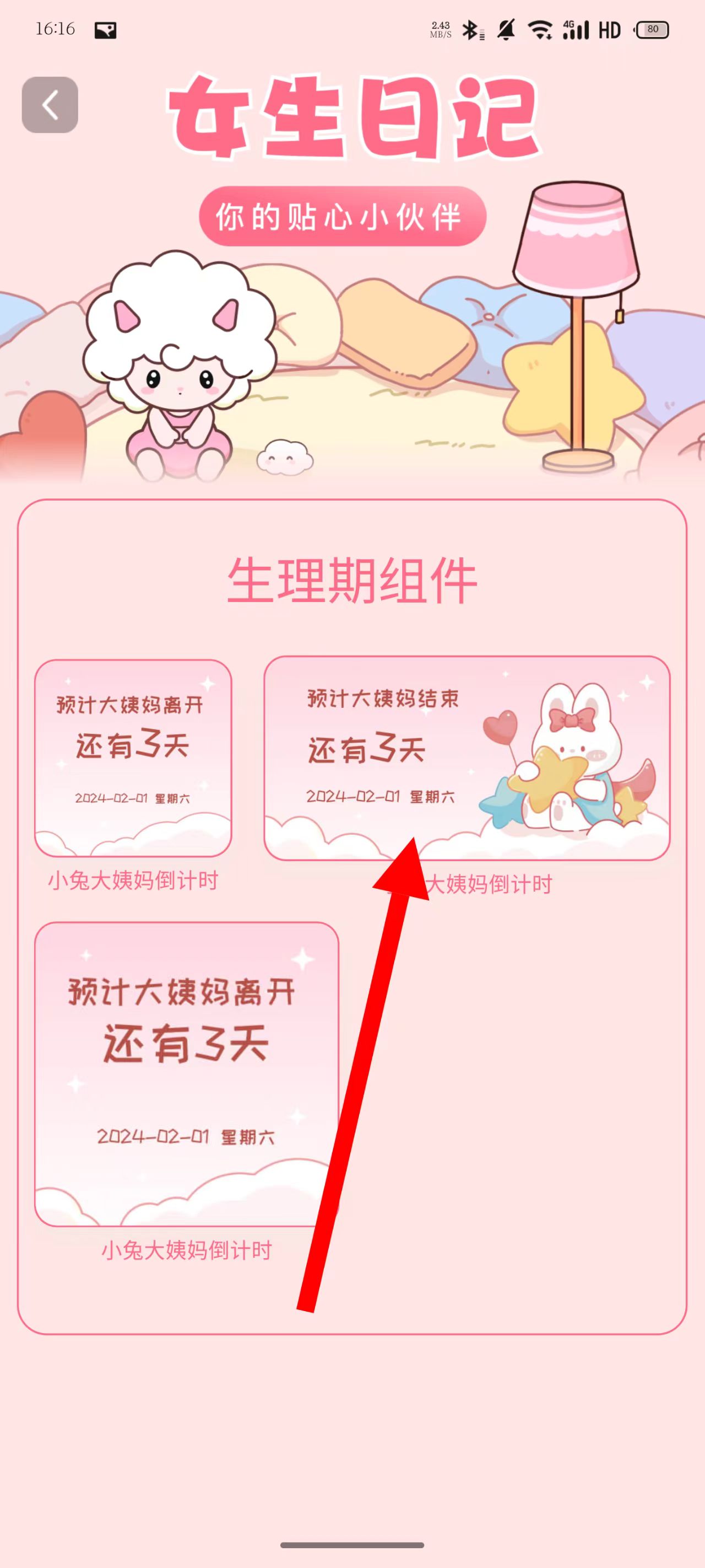 2、点击选择生理期组件按钮,进入生理期组件选择界面。