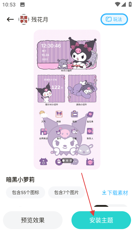 2、在主题页面,选择暗黑小萝莉主题,进入该主题详情页。